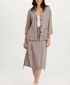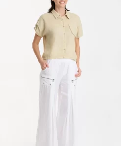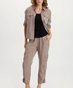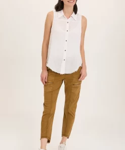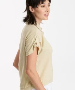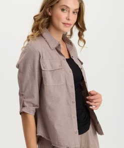 XCVI Women’s Shop Arvin Perforated Poplin + Jersey Tabbed 3/4-sleeve Snap-up Top | Poppy Seed