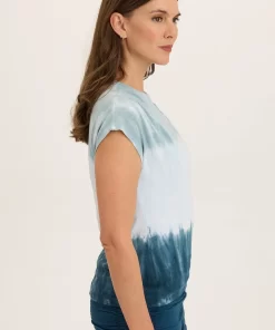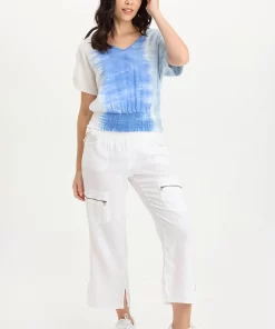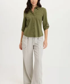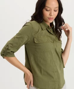 XCVI Women’s Shop Arvin Perforated Poplin + Jersey Tabbed 3/4-sleeve Snap-up Top | Cypress Pigment