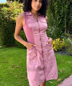 XCVI Women’s Shop Delmis Poplin/ribbed Sharkbite Zippered Collar Dress | Cherished Pigment