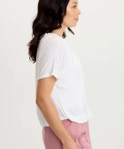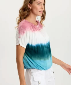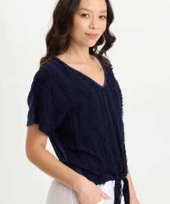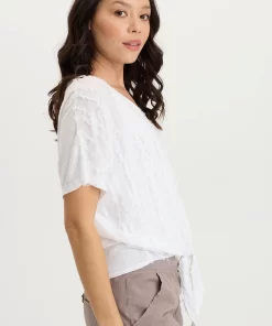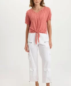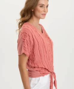 XCVI Women’s Shop Curine Stripe Voile/jersey Knotted V-neck Top | Cherry Fizz Pigment