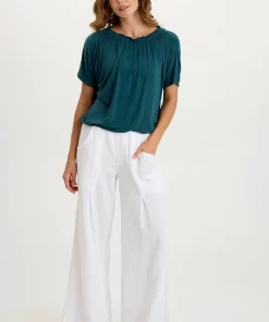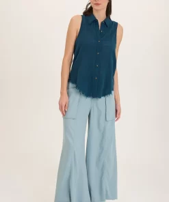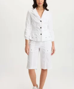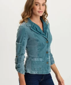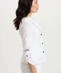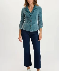 XCVI Women’s Shop Darwin Poplin/ribbed Tabbed 3/4-sleeve Jacket | Distress Wash Tideworn