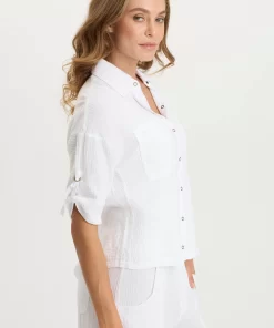 XCVI Women’s Shop Maven Jersey 3/4-sleeve V-neck Tee | White