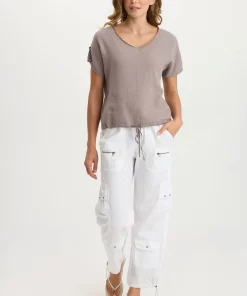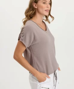 XCVI Women’s One-pieces Bower Gauze/jersey Tabbed-sleeve Bubble-hem V-neck Tee | Poppy Seed