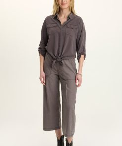 XCVI Women’s Tops Senneca Textured Satin Shirred Peplum Button-up Blouse | Ocean Storm Pigment