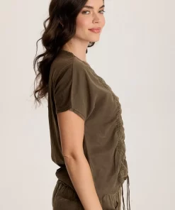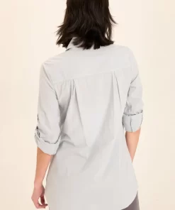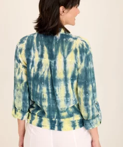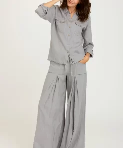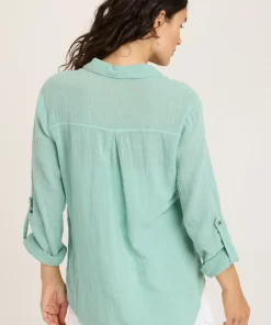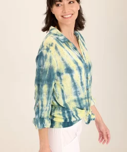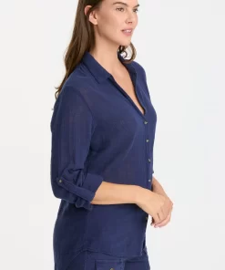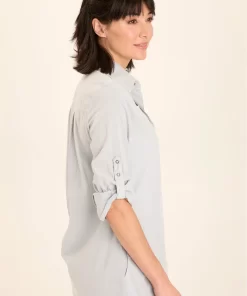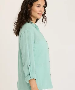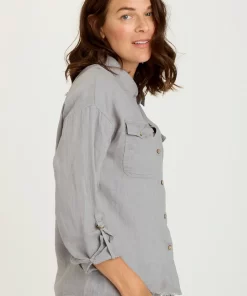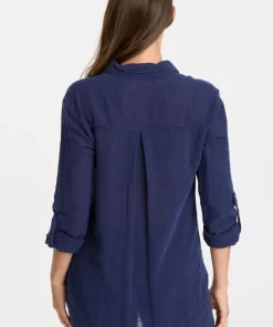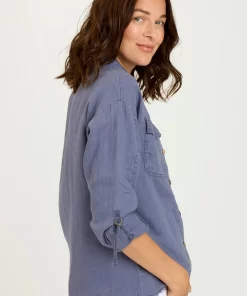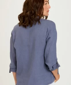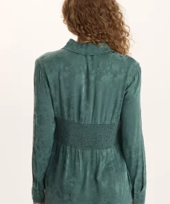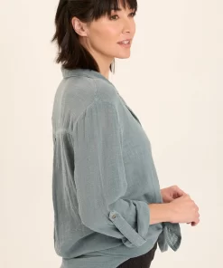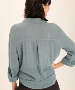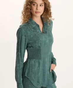 XCVI Women’s Tops Senneca Textured Satin Shirred Peplum Button-up Blouse | Ocean Storm Pigment