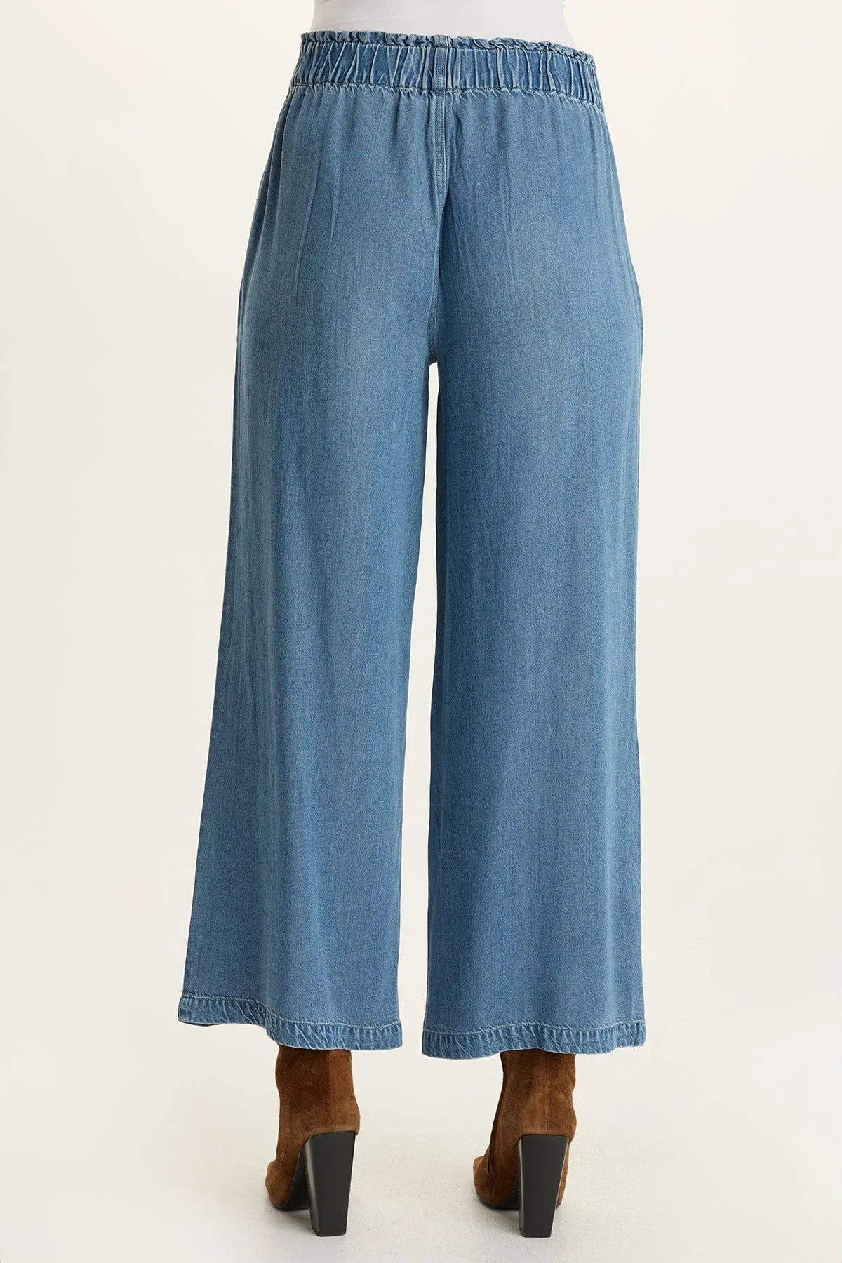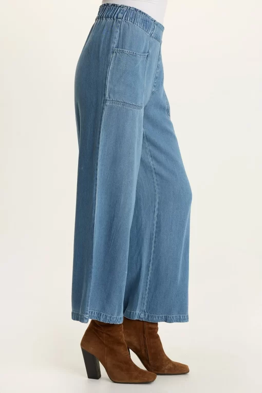In flexible Dulcet Denim, this wide-leg, pull-on style is here to save you from stiff, starchy jeans! With roomy front pockets and a gently flared silhouette, Gaia is flattering and functional all in one.