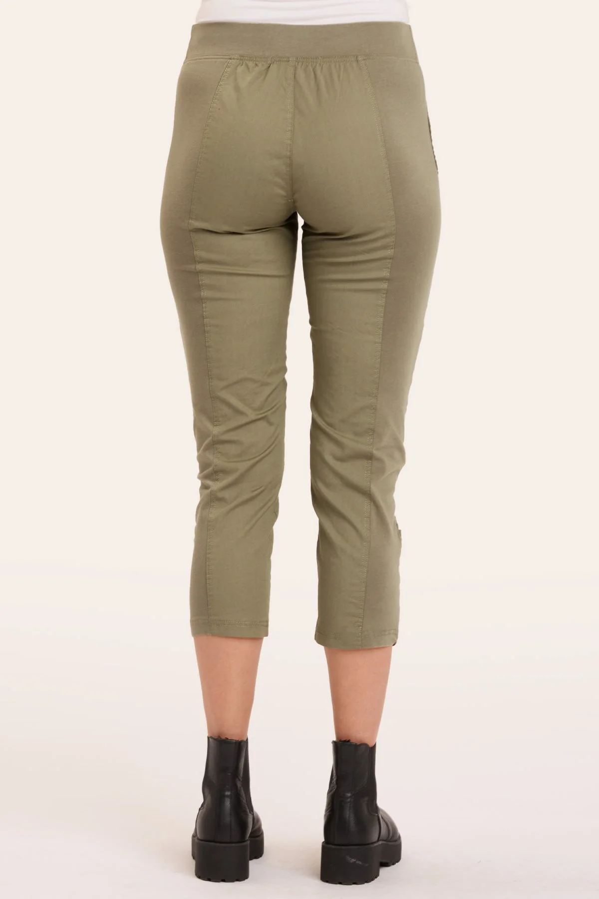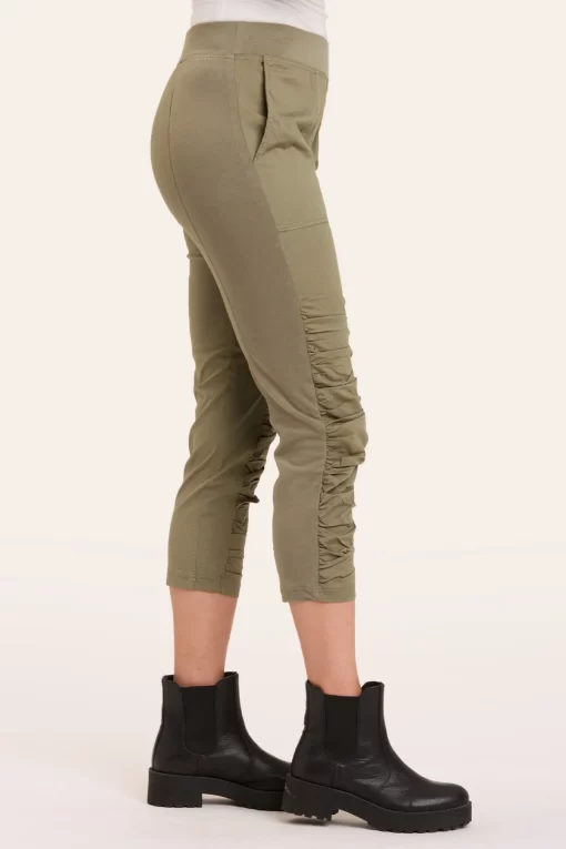 A variation on the classic Jetter Crop Legging. This one features two front pockets, along with the classic elastic pull-on waistband, ruching on leg front, and jersey side inserts for an impeccable fit.