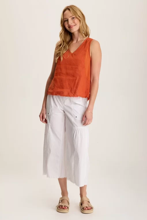 Classic as can be, Estine features a roomy silhouette with a raw-edge hem, bra-concealing straps, and v-neck cut in Lavish Linen.