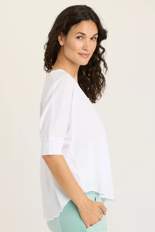 Contrast banded sleeve with a high-low hem, Gardiner Top is a slightly oversized, anything but basic, tee.