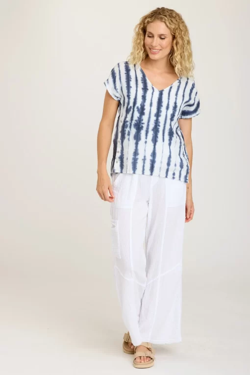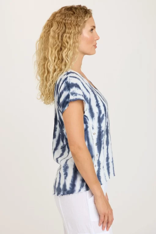 A simple shell top with a twist, or rather, a snap! Snap up side seams allow for you to rock Rian snapped up or free flowing. Contrasting jersey panel on the back yoke gives Rian extra easy breezy vibes.