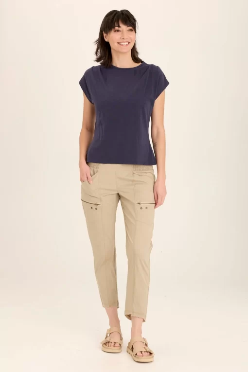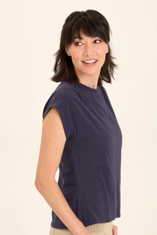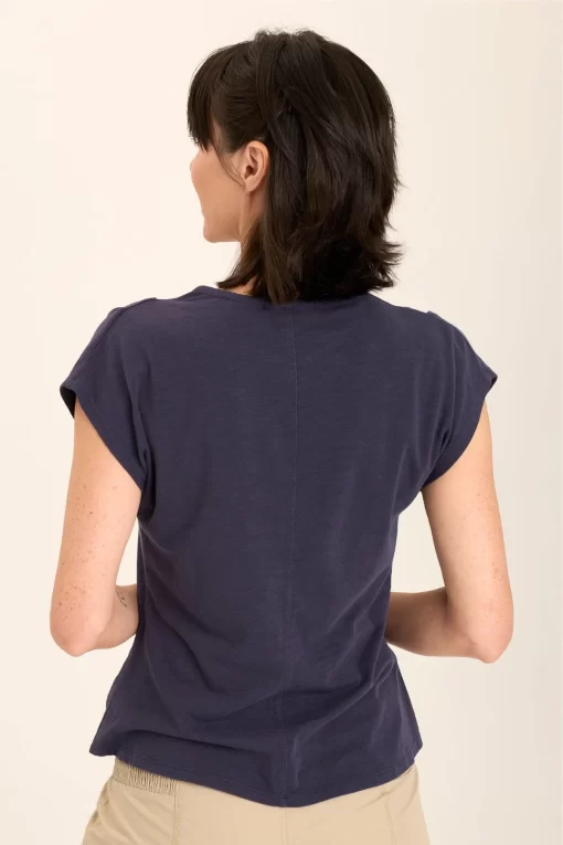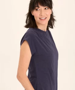 Two pleats adorn the shoulders of this mock neck classic silhouette. In our breezy slub jersey, comfort and style are hand in hand with this stunner.