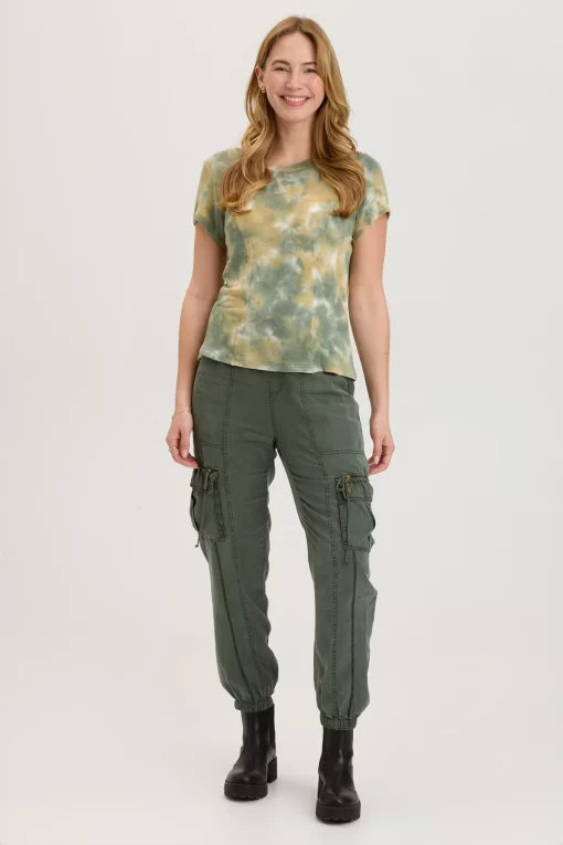 - Color Description: Sporadic placed lie green, dark green and white tie dye.