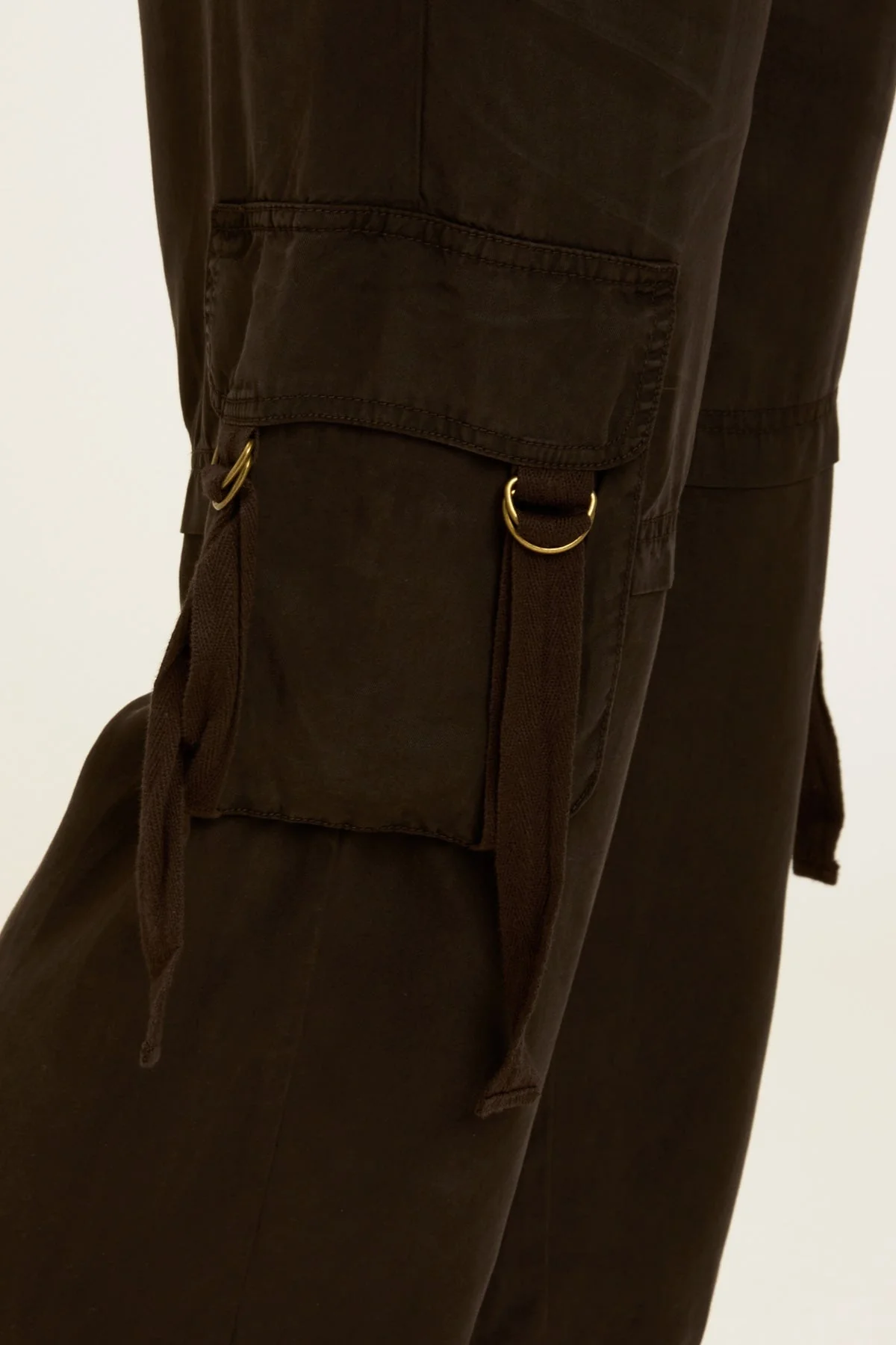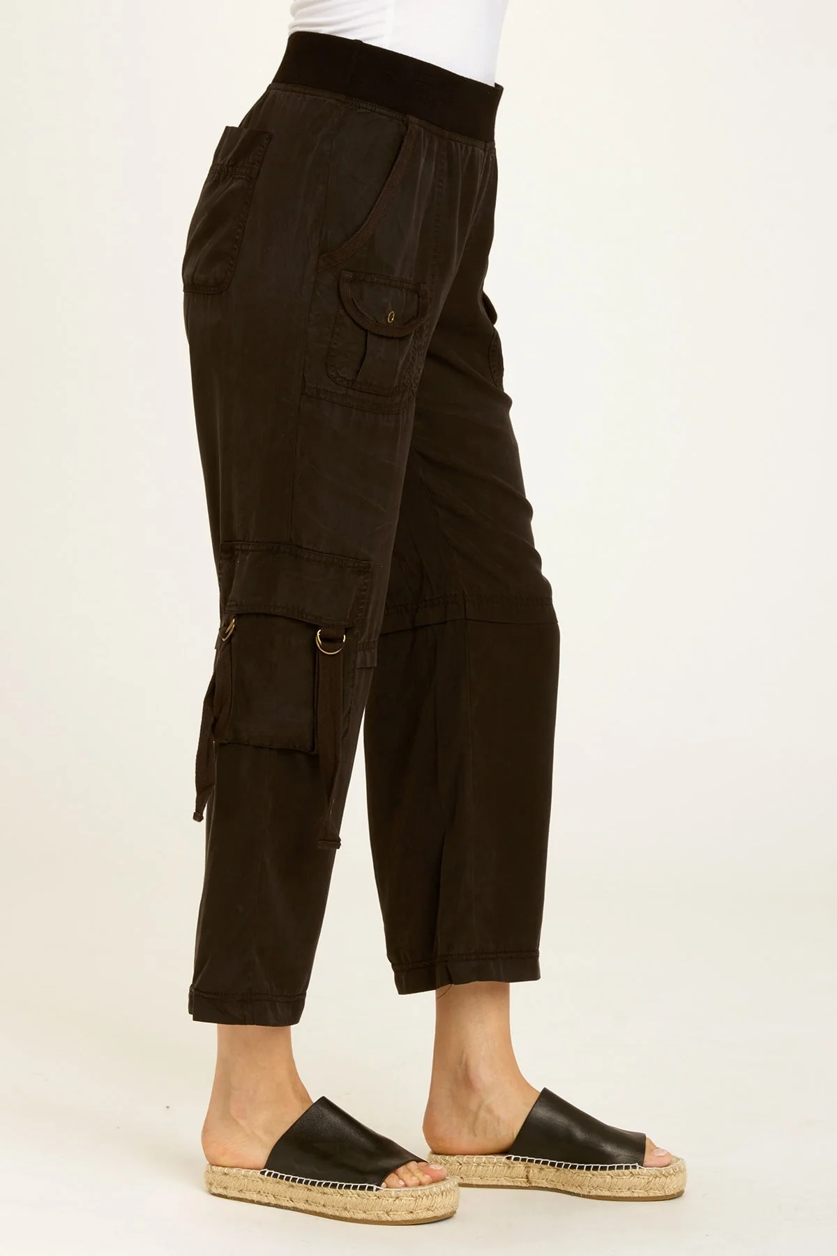 Pull-through d-ring cargo pockets and ring snap pockets grace this Soft Twill crop. A pull-on waistband and straight yet roomy silhouette top it all off.