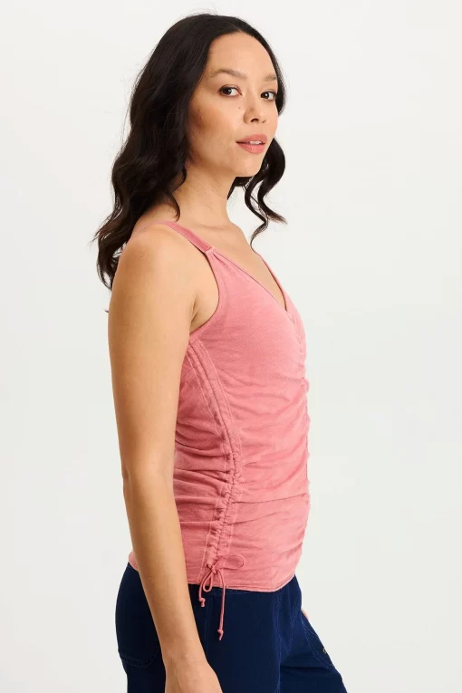 Cinch it a little, or cinch it up all-the-way! Blaise Tank has ruching all around while allowing for customizable side seam cinch-ability.