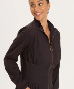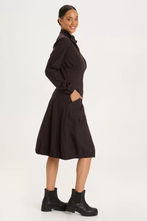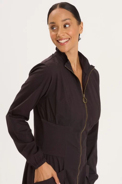 Another beloved jacket dress! This one features ribbed waist panels and gathered cuffs and hem along with fun oversized pockets and a double ended zipper.