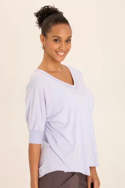 Contrast banded sleeve with a high-low hem, Gardiner Top is a slightly oversized, anything but basic, tee.