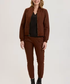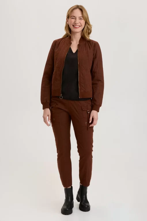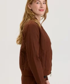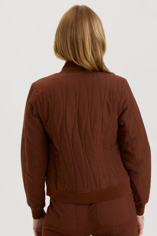 Another classic in a fun fabric! This clean bomber features a cotton quilted design and rib trims.