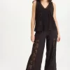 Ruched waist panels and a flared leg gives Kaj all the drama with slimming demure.