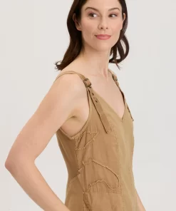A full length, bubble hem tank dress that features laser cut voile panels and rib contrast inserts for comfort of wear.