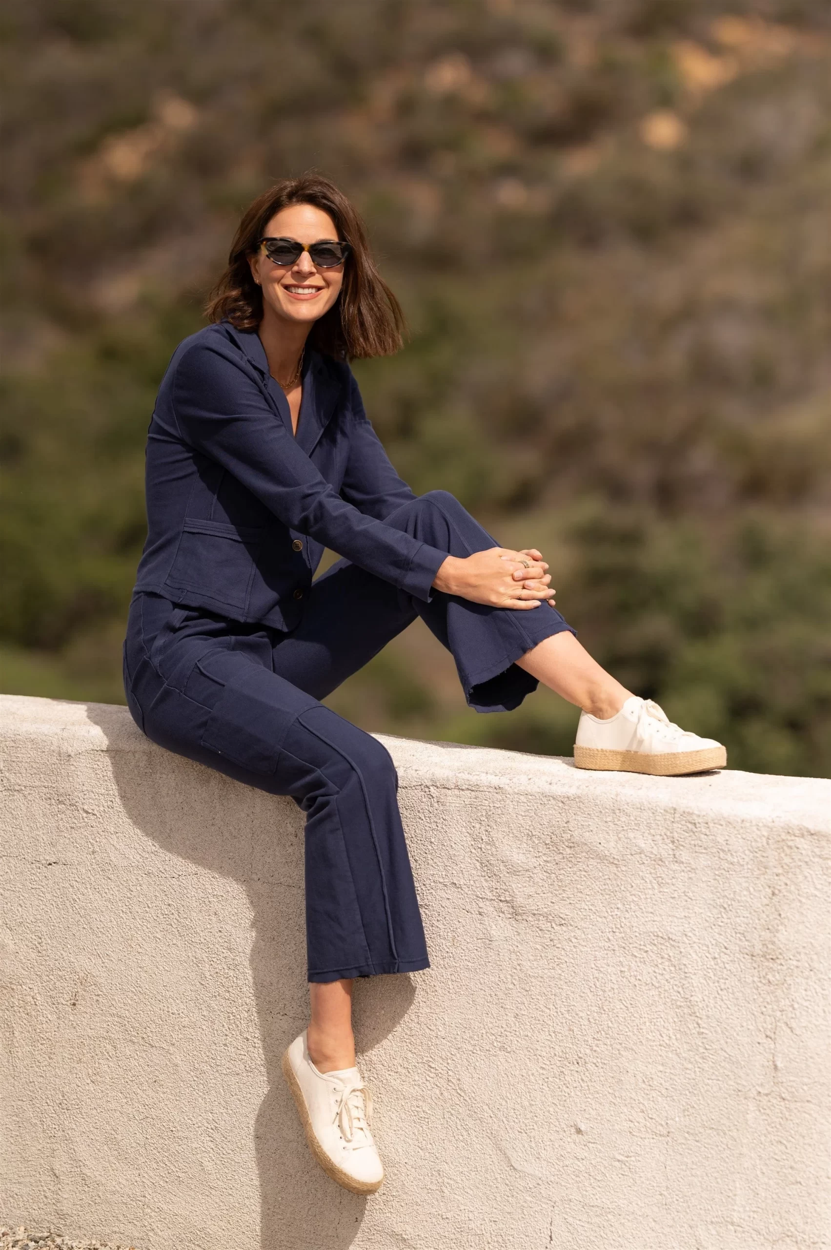 Pockets in the front, pockets in the back AND pockets on the side; this cargo flare pant features a pull-on waist and fun style lines thorughout.