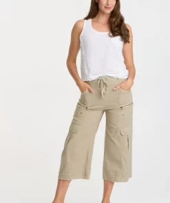 In breathable Cotton Linen, BirkÕs elastic waistband features rib contrast and a drawstring, twill tape-edged front and back pockets, an antique brass bell zipper and matching eyelet details on the front pockets.