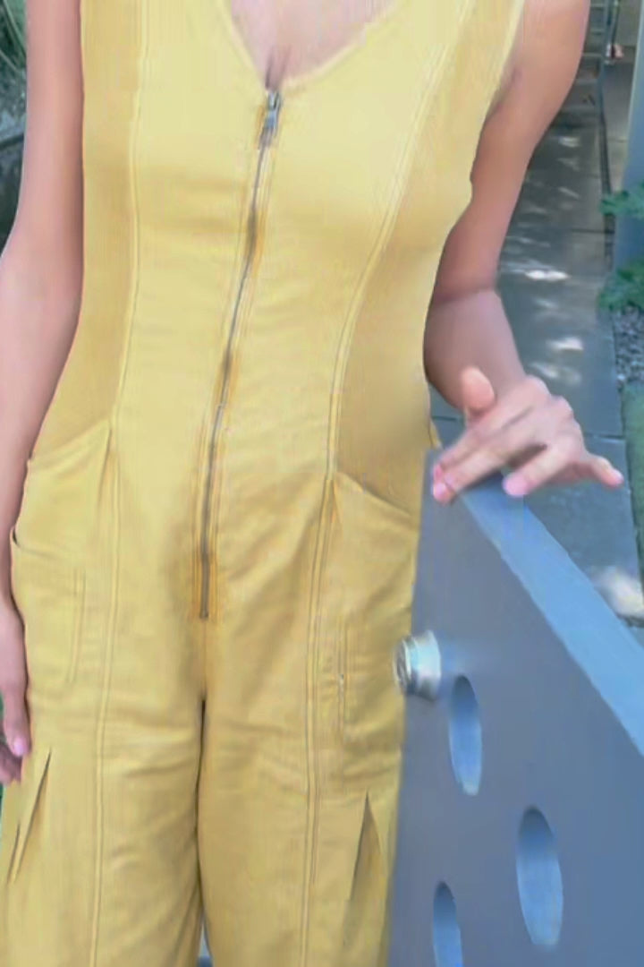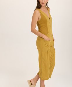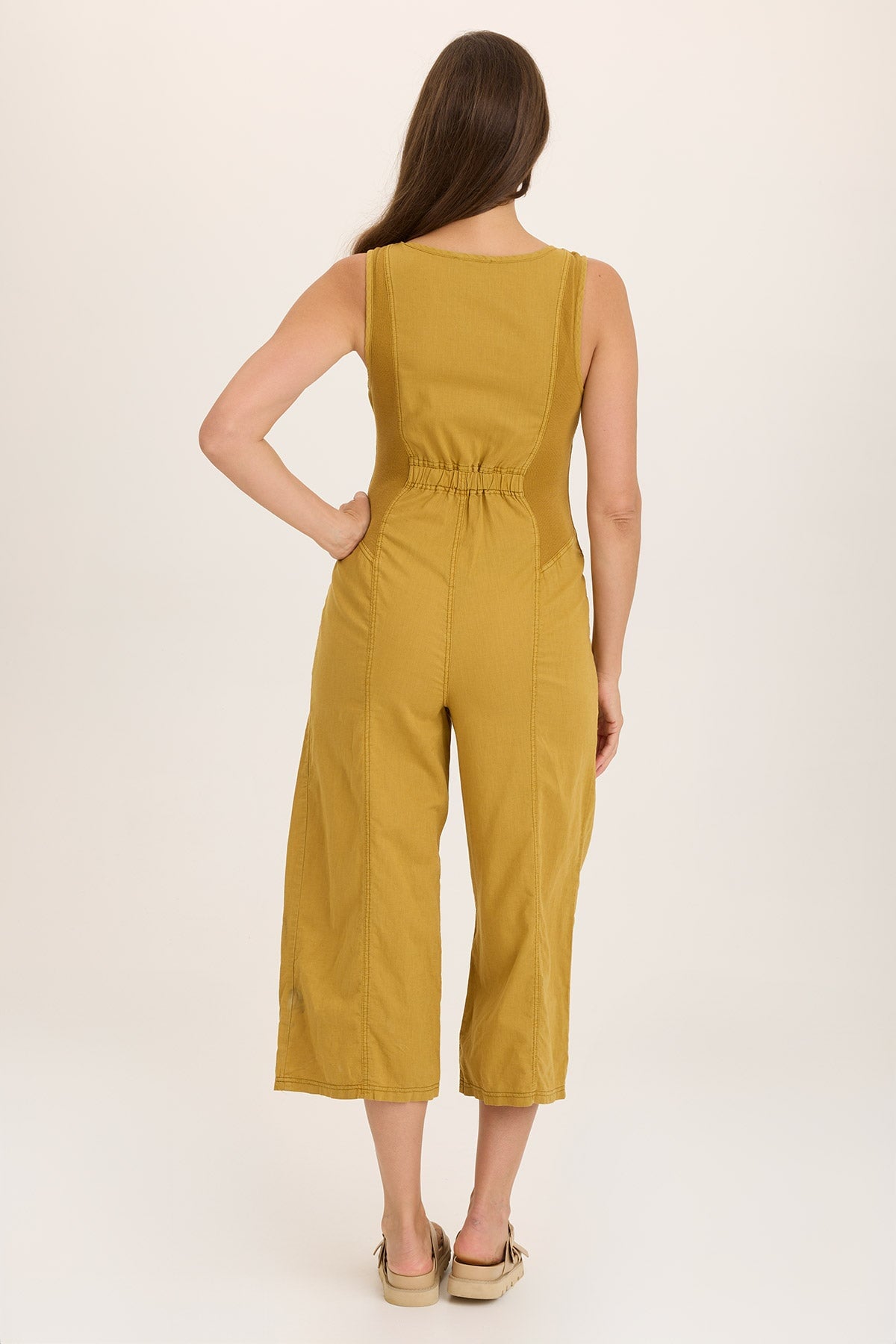 This cotton linen head-turner features contrasting inserts at the bodice for a fit you can count on. Paired with layered pockets at the hips, small box pleats cascade and add soft volume to the leg. A v-neckline descends into an antique brass zipper that makes Macgowan easy to put on and take off.