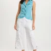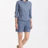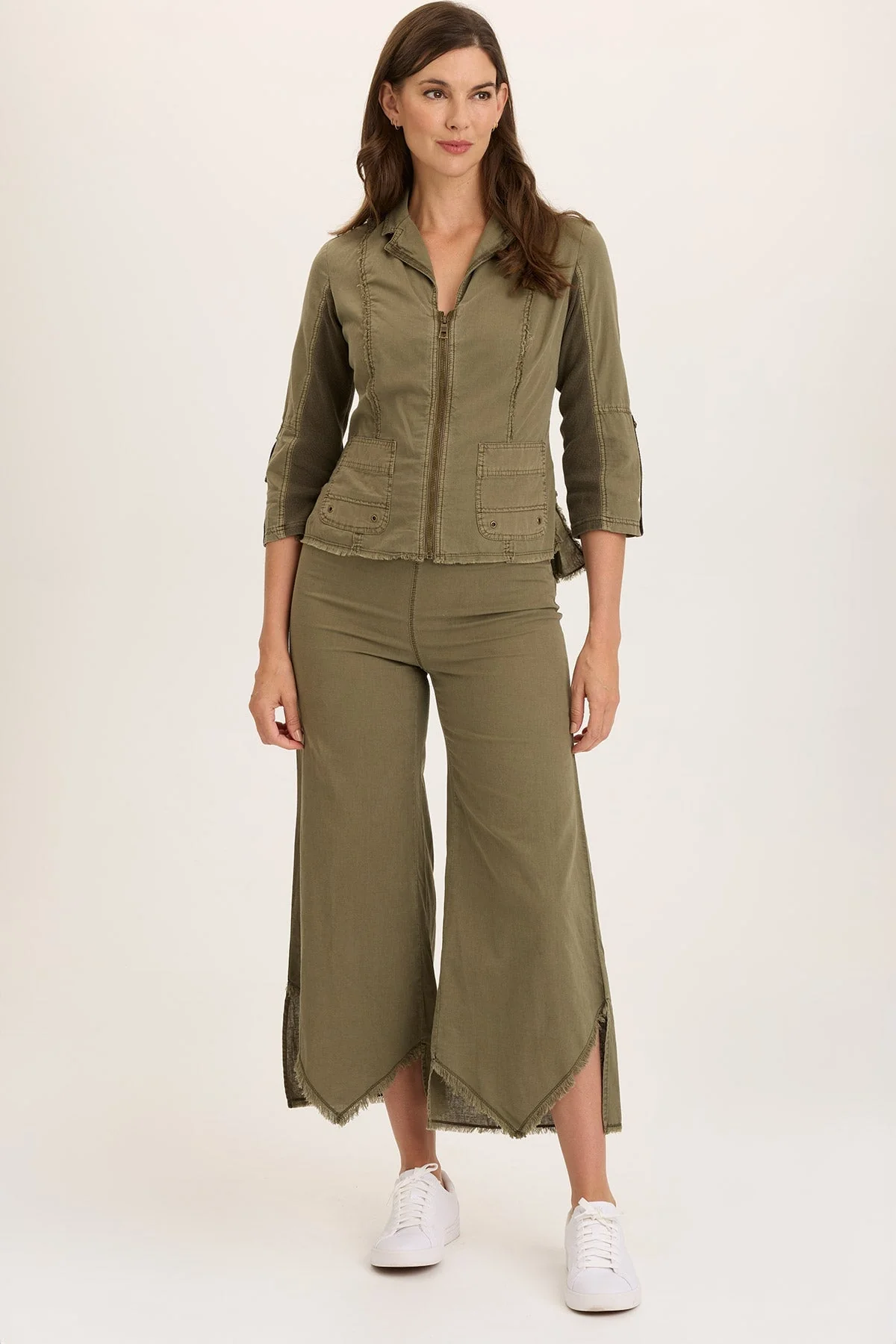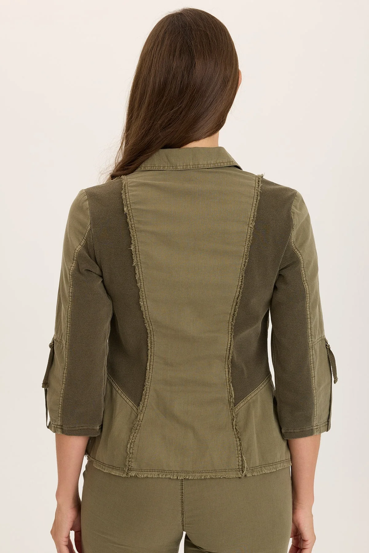 Your favorite, now in Cotton Linen! Hardware and raw edges are highlighted in our Raphael Blazer. Fabric-mixed contrasting panels, eyelets along the pocket edges, and brass ring snaps are just a few of the details throughout this interesting jacket.