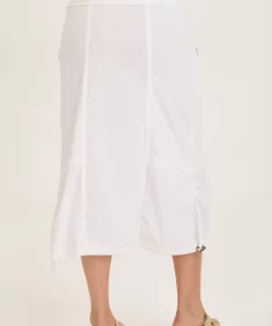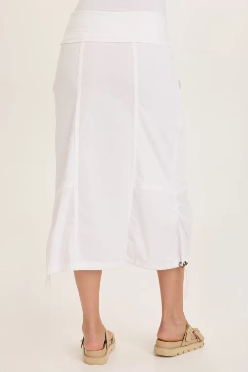 Fold over jersey waistband, cinchable bubble hem and contrasting panels are just a few of the best features of the Marconi Cargo Skirt. Chunky low pockets, a side pleat and brass hardware make this daring skirt one of a kind!