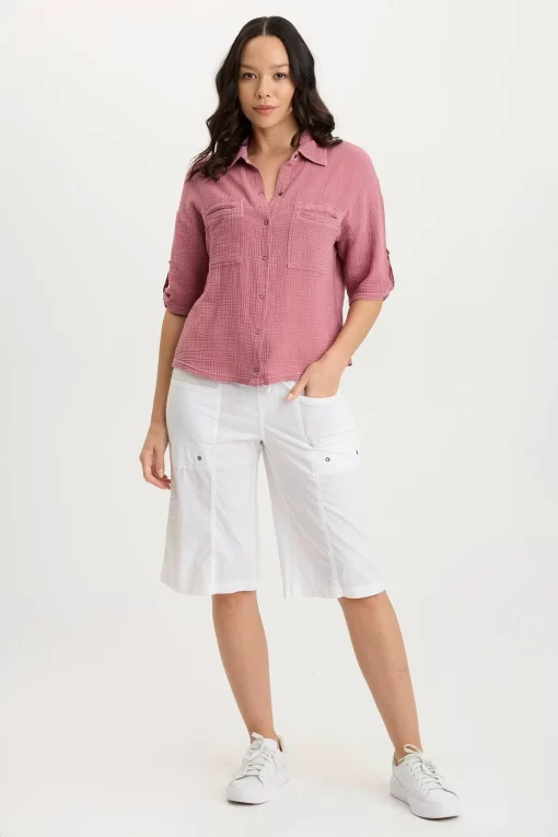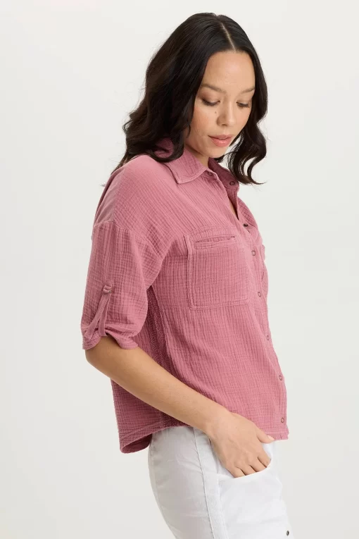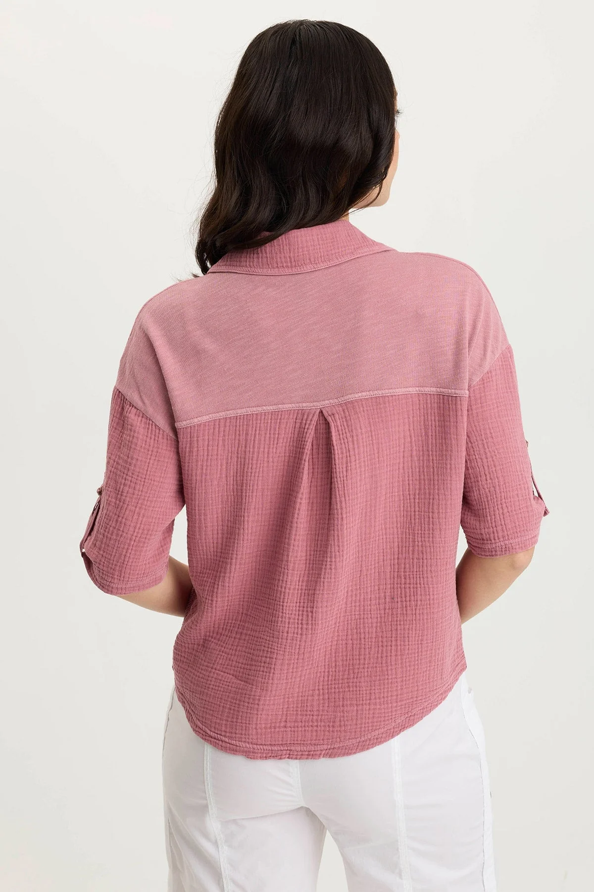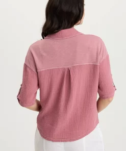 XCVI Women’s Shop Maurise Gauze/jersey Tabbed-sleeve Snap-up Top | Cherished Pigment