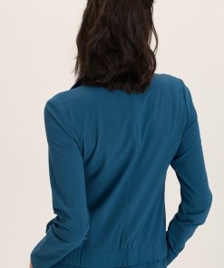 Maximum performance meets the Momentum Jacket in flexible Whisper 4-Way Stretch fabric, designed for sweat-resistant movement and easy comfort. Momentum features allover ruching on the front, an elastic cinched hemline, and a belted buckle detail at the collar for some added chic. Wear for movement or style with a casual bottom for sartorial excellence! Activewear never looked so stylish!