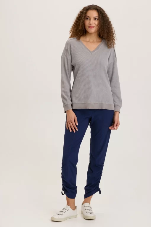 Our favorite thermal is back with a “tail” to tell. High low hem with rib details show how cozy and easy Oxley can be to wear.