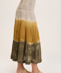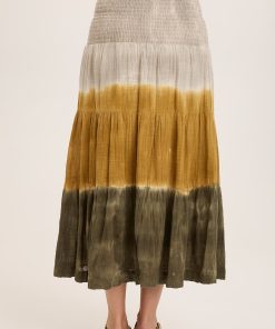 A shirred high waist and tiered, flowing silhouette make this Cocoon Gauze midi skirt as comfy as she is twirl-worthy.