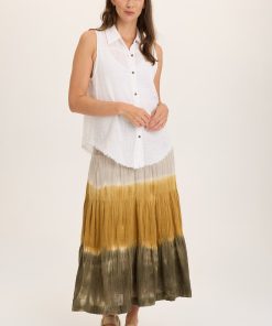 A shirred high waist and tiered, flowing silhouette make this Cocoon Gauze midi skirt as comfy as she is twirl-worthy.