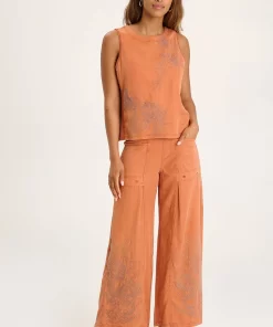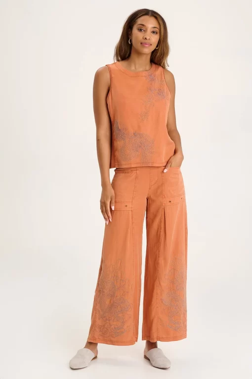Phenomenal Pheodora is adorned with hand-drawn embroidery from our guest designer Nadia, and features small pleats and a pull-on waist for a wide leg look with major flare!