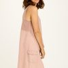 This gauze button-up blouse is great for layering. Features tabbed sleeve for easy rolling, curved hemline, and a box pleat on back.
