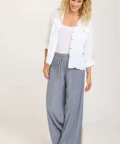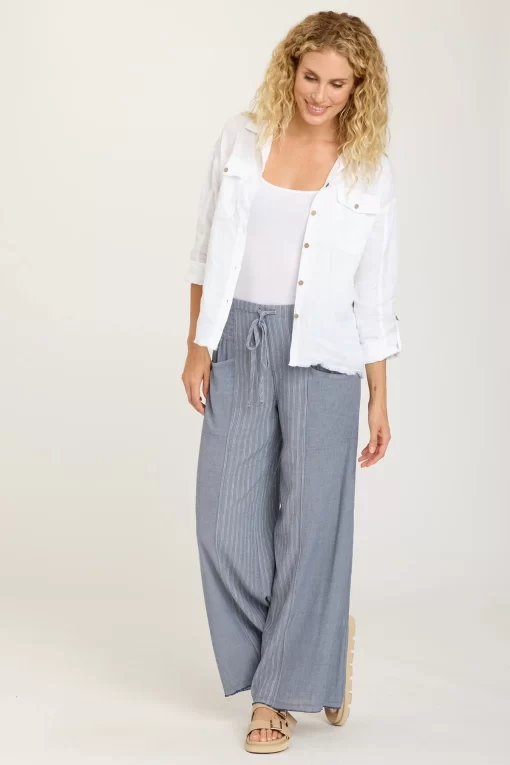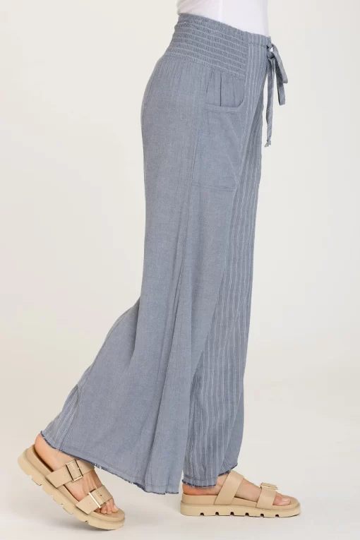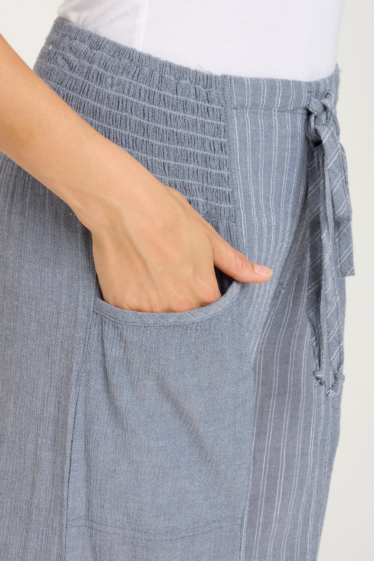 A generous, wide silhouette keeps Quita cozy and casual, while an adjustable waistband, roomy front pockets, and striped gauze panels amp up the detail.