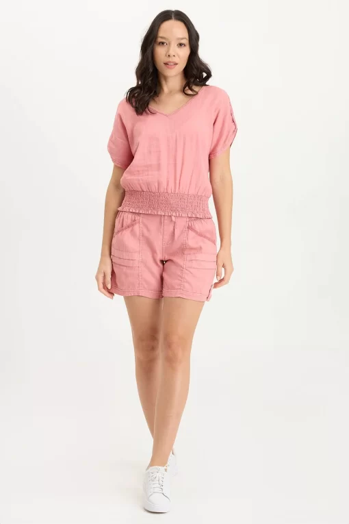 Elastic and drawstring waistband hold together the Rebel Short. With tabs at the side hem and an open pleat detail, throw this little troublemaker on and be fabulous!