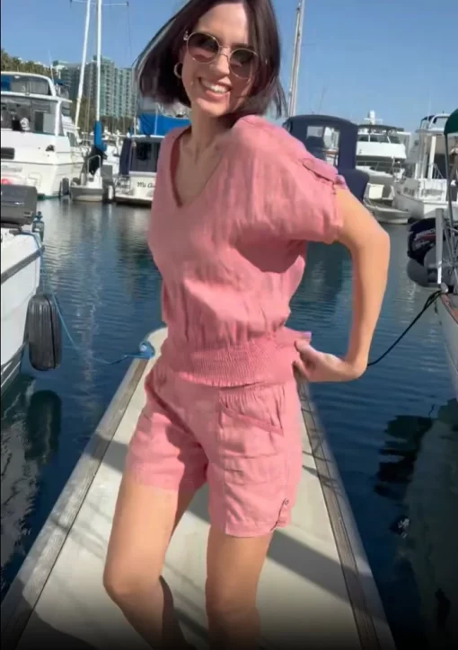 - Waistband: 3.5″ Elastic Ruched Side Waist with Drawstring