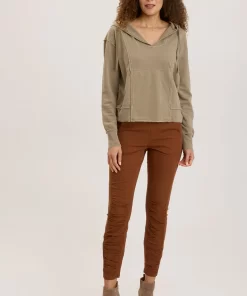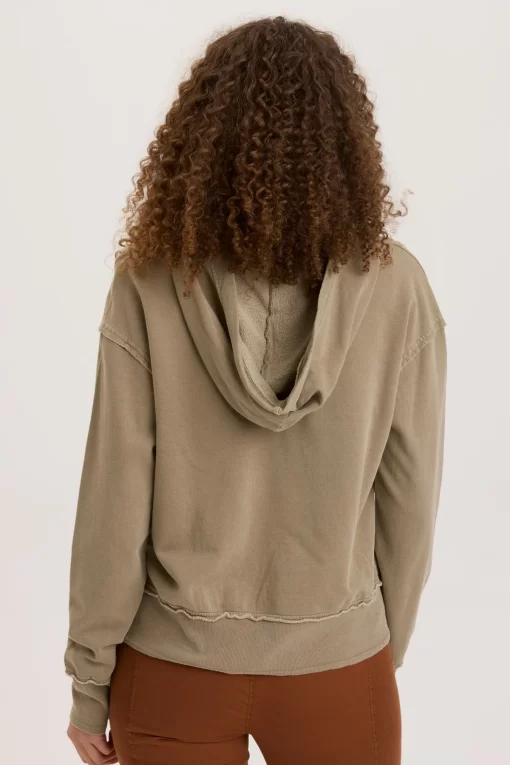 Raw edging details and exaggerated rib contrast has Rosalyn turning heads. With a traditional kangaroo pocket and slimming seaming, Rosalyn will be your favorite fashion sweatshirt.