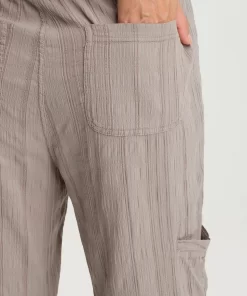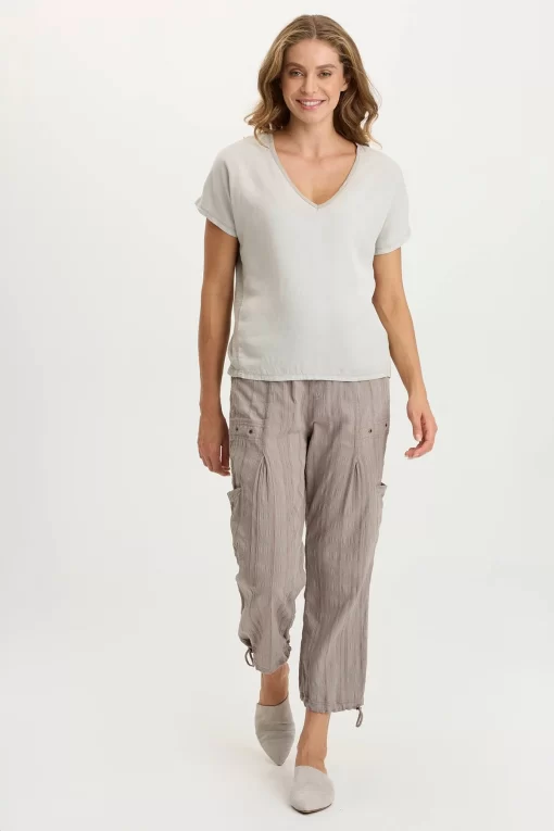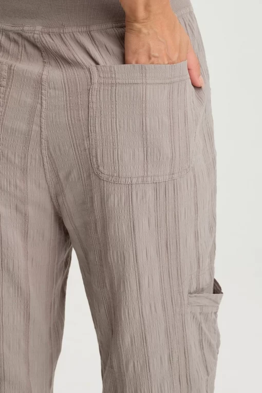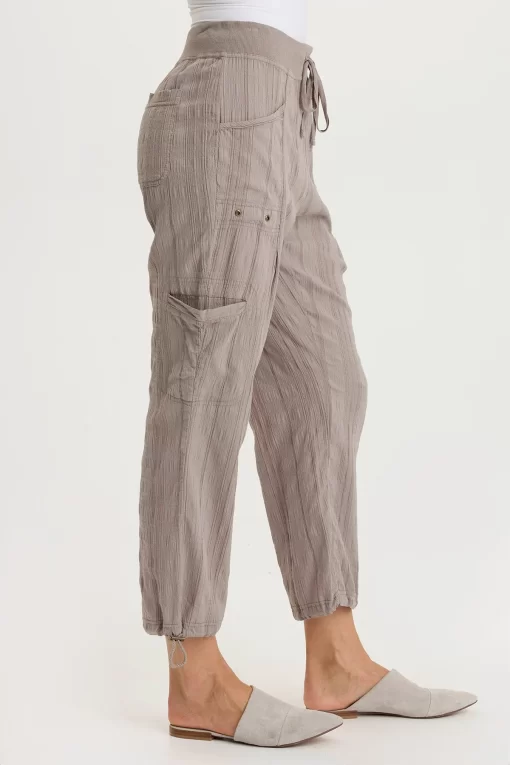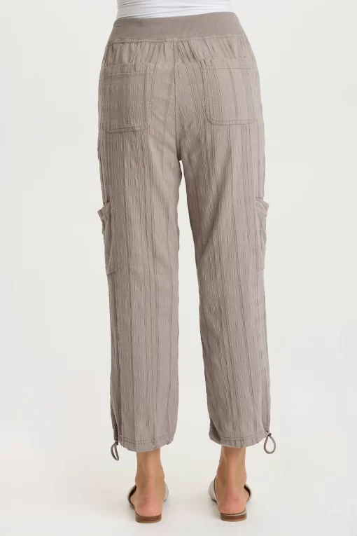 A cinchable leg, textured gauze pull-on crop, Ryle has front pleats, two welted cargo pockets, and two front and two back pockets.