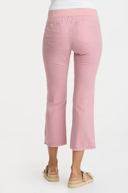 This stretch twill crop is quickly becoming one of our best-selling denim alternative pants. Features a clean straight leg silhouette, elastic pull-on waistband with faux fly, two jean-style back pockets, and raw edge hem.