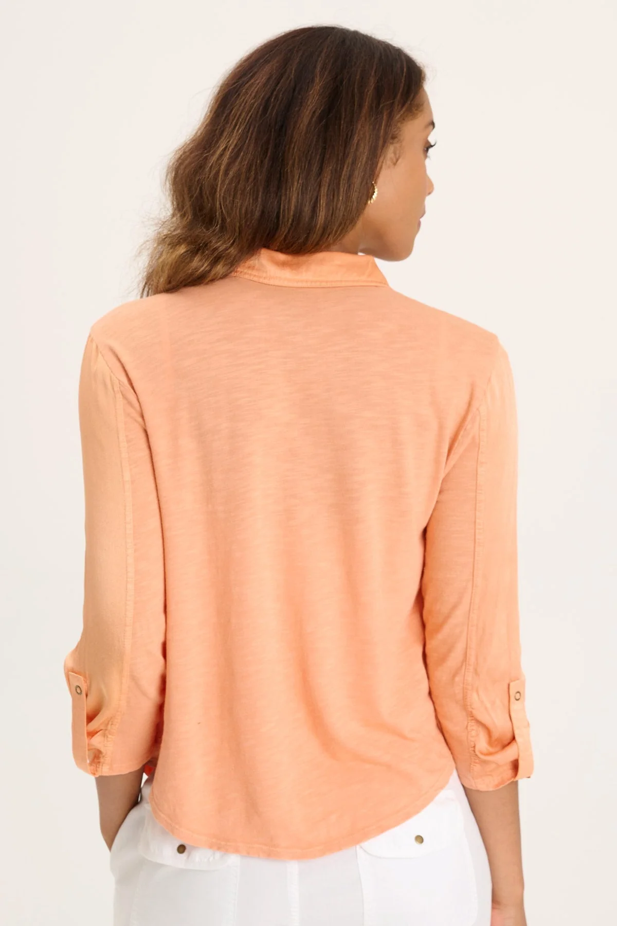 Another fabulous snap-up top, Sedgwick features tabbed 3/4 sleeves, a front yoke, a contrast jersey back, and functional breast pockets.