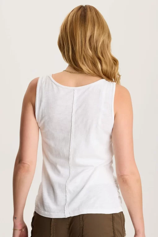 A diagonal ruched corded channel runs along the front of this scoop-neck classic, creating customizable details depending on your desired look. Bra-friendly straps and stretchy jersey mix classic sporty elements with a touch of the avant-garde.