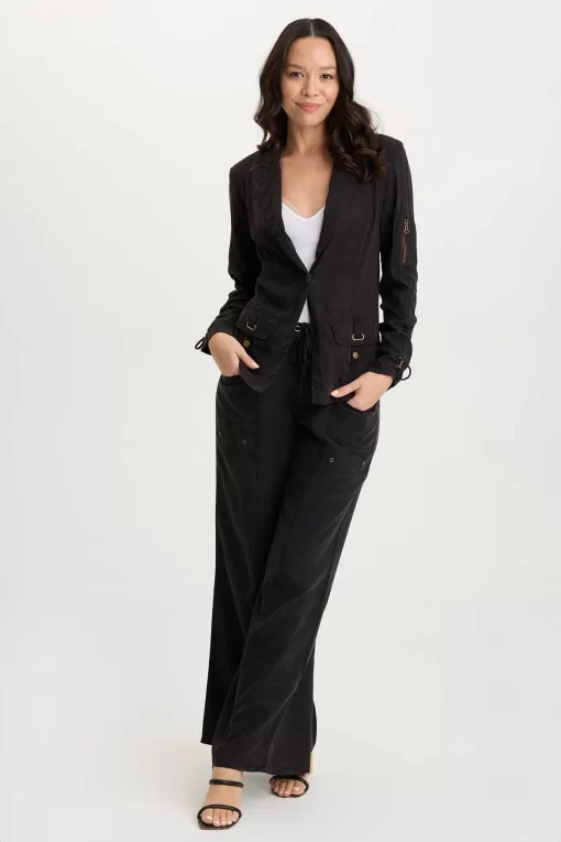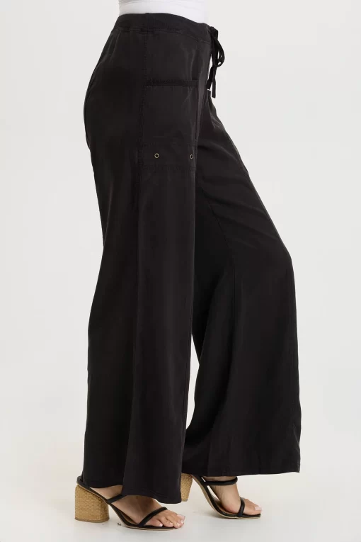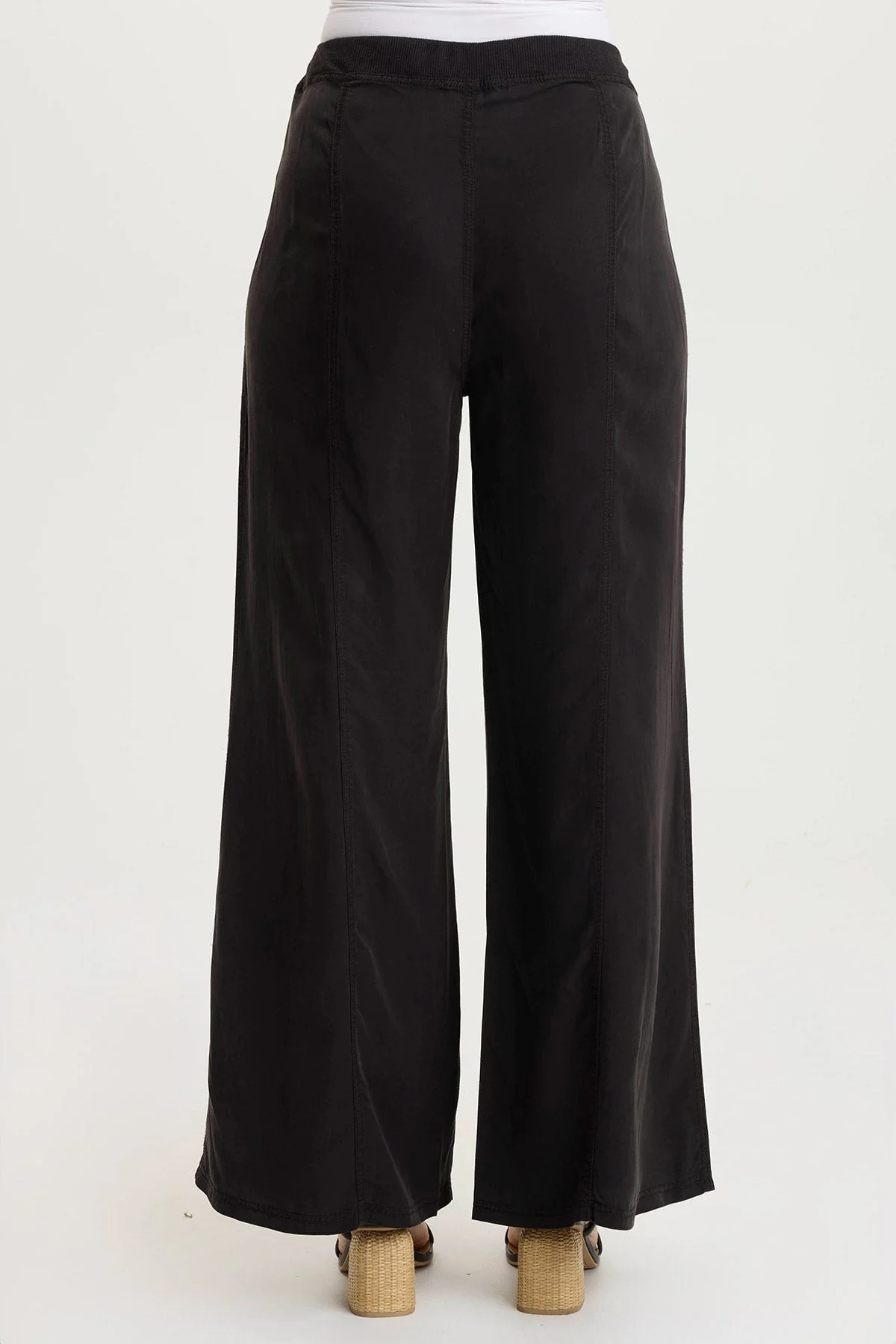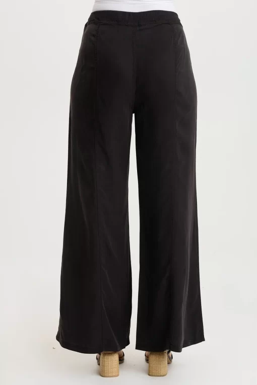Simply seamed and clean, Tarla has dropped front pockets and a rib and a drawstring waist.