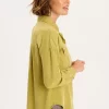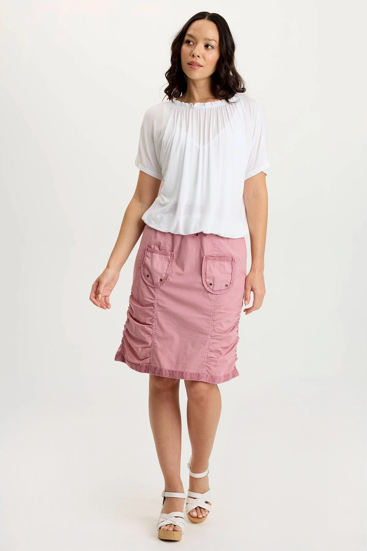 A mid-length skirt with classic XCVI ruched panels, two curve patch pockets and a rib and drawstring waistband.