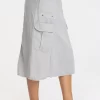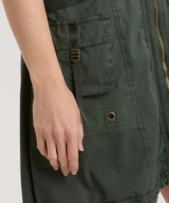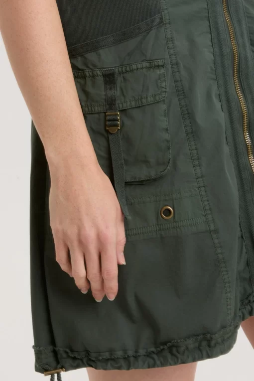 The famous jacket dress is on full display here. With exaggerated cargo pockets on top of front pockets, a cinchable bubble hem and brass hardware all around, this hooded number will have you collecting it in every color.