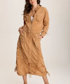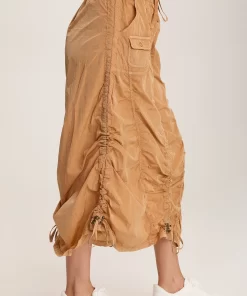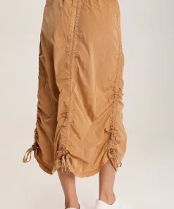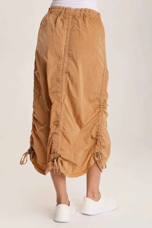 Performance-friendly nylon takes this cargo midi to the next level! Ruched paneling throughout, adjustable cinching at the hem, a drawstring elastic waist, and flapped pockets take on tactical inspiration.
