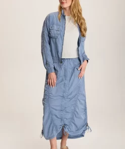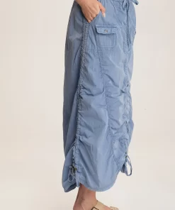 Performance-friendly nylon takes this cargo midi to the next level! Ruched paneling throughout, adjustable cinching at the hem, a drawstring elastic weight, and flapped pockets take on tactical inspiration.
