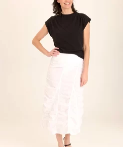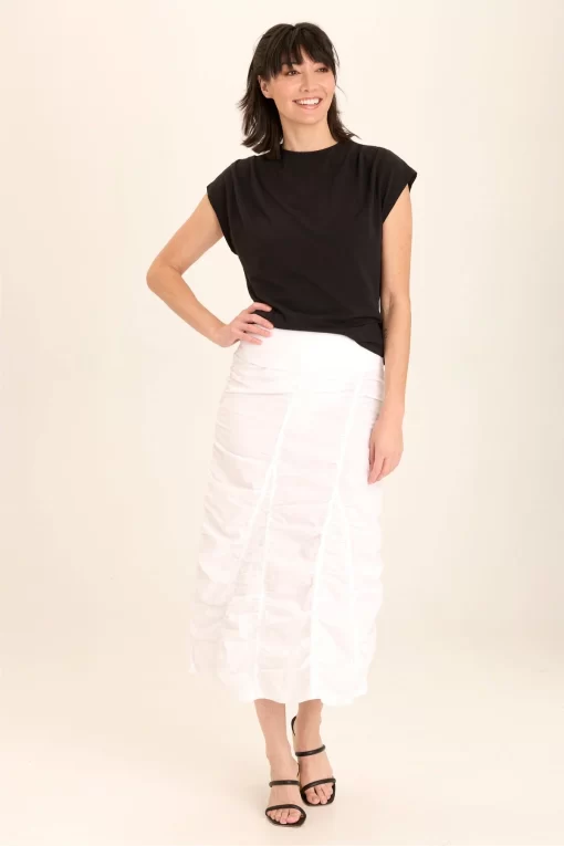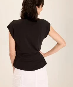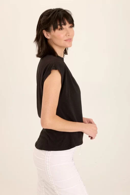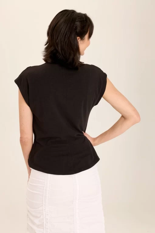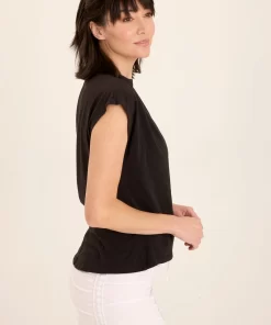 Two pleats adorn the shoulders of this mock neck classic silhouette. In our breezy slub jersey, comfort and style are hand in hand with this stunner.