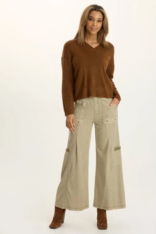 A cozy fit with a ribbed v-neck, cuffs, and hem bring out the best in this staple sweater knit.